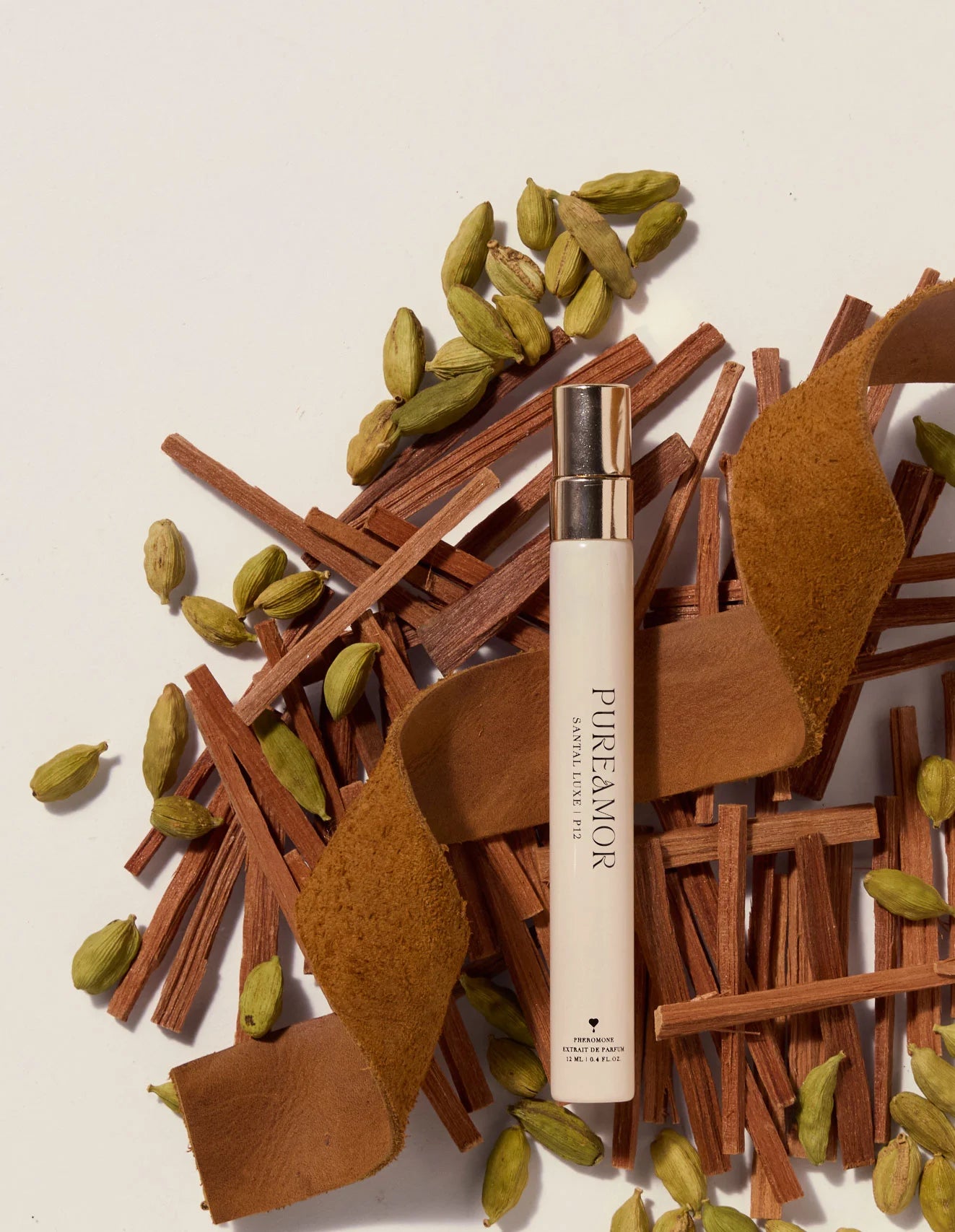 A warm, modern pheromone perfume blending citrus, sandalwood, and leather into a refined, genderless scent that feels earthy, artistic, and effortlessly magnetic.