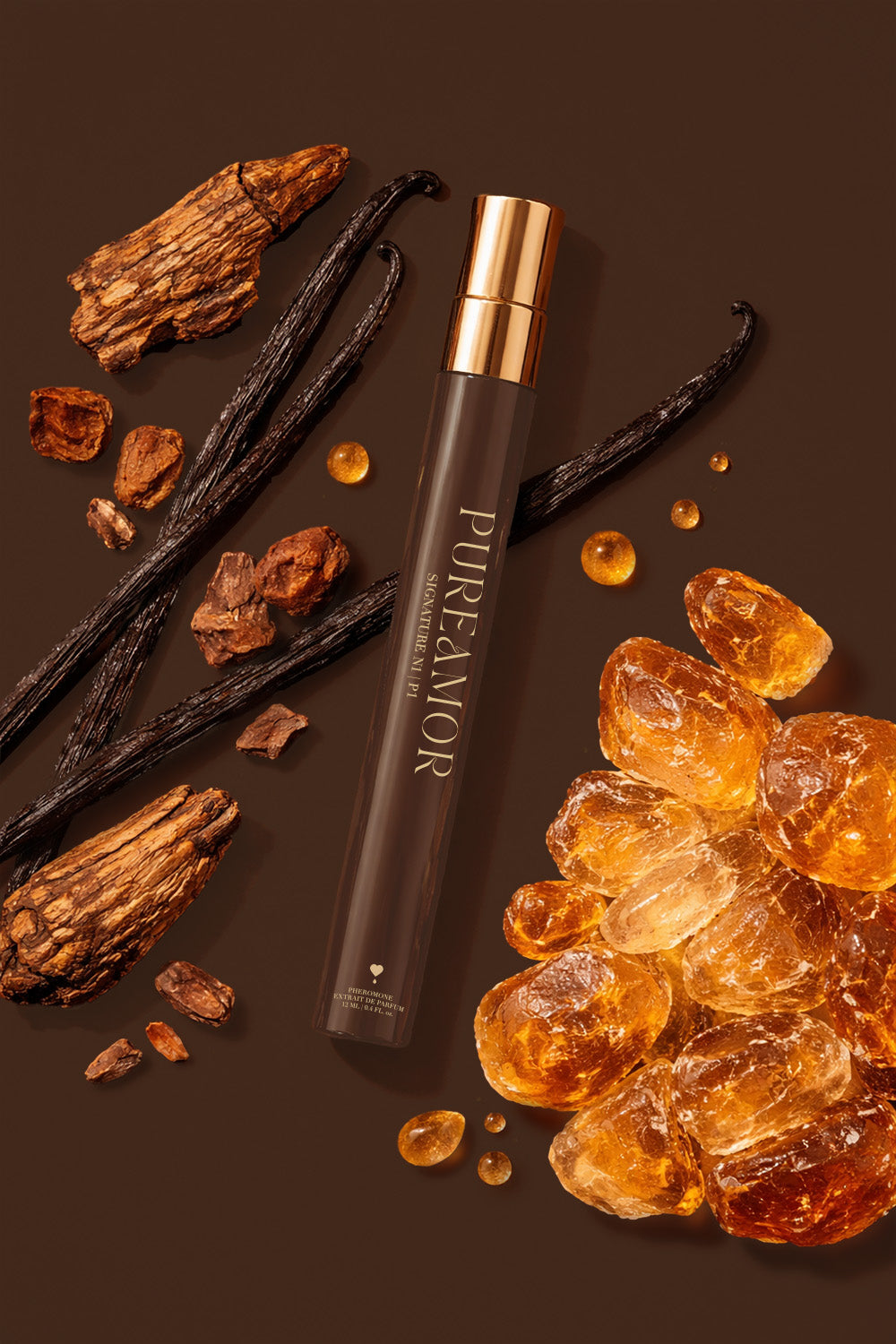A warm, radiant pheromone perfume inspired by golden-hour romance. Opens bright with blackcurrant and bergamot, then melts into soft vanilla woods and jasmine for a skin-hugging finish that lingers.