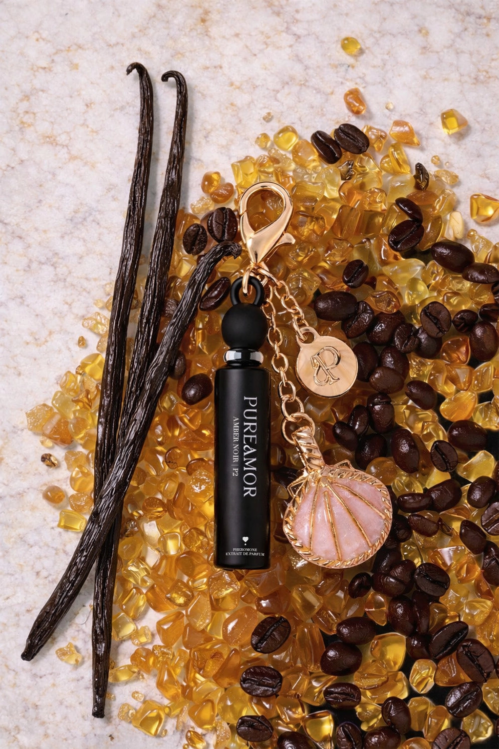 A warm amber pheromone perfume where vanilla and coffee melt into a soft, addictive glow.