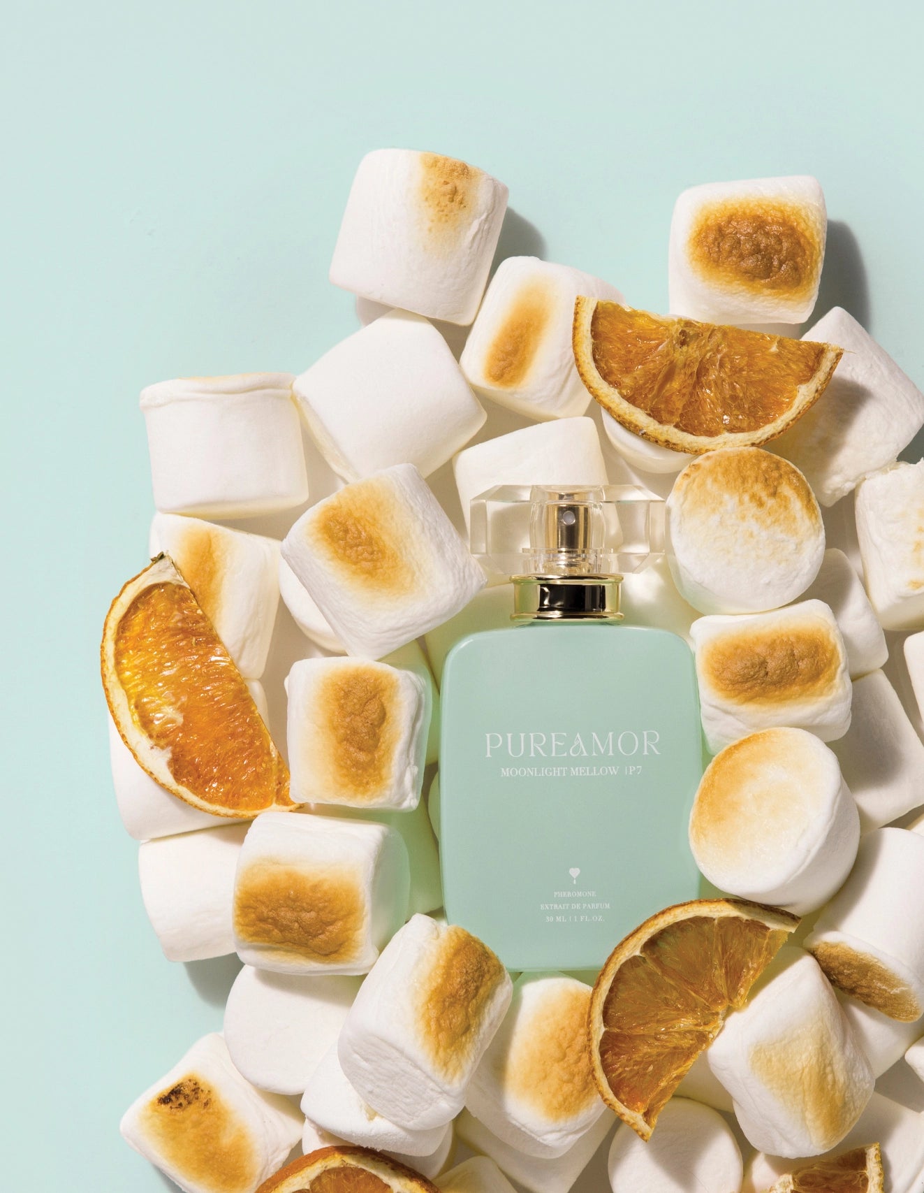A sweet, playful pheromone perfume blending neroli, orange, and marshmallow into a feminine, flirty sweetness that feels dreamy, inviting, and irresistibly addictive.